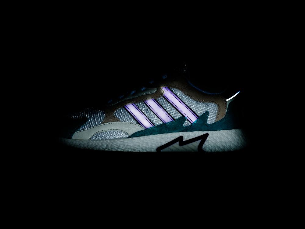 Кроссовки Adidas Tresc Run – спортивная обувь в стиле ретро. Верхняя часть кроссовок выполнена из сочетания замши, плотной текстильной сетки и кожи. Причем большая честь верха кроссовок изготовлена именно из текстиля, что обеспечивает легкий вес и комфортный микроклимат внутри обуви. Кожа и замша усиливают носок и пятку, придавая кроссовкам долговечность и обеспечивая защиту ног владельца. Подошва обуви изготовлена по фирменной амортизирующей технологии «Boost». Подметка кроссовок в своей основе изготовлена из полиуретана, с резиновыми вставками. Эти материалы зонируют протектор подошвы с псевдошимами и водоотводящими ламелями.