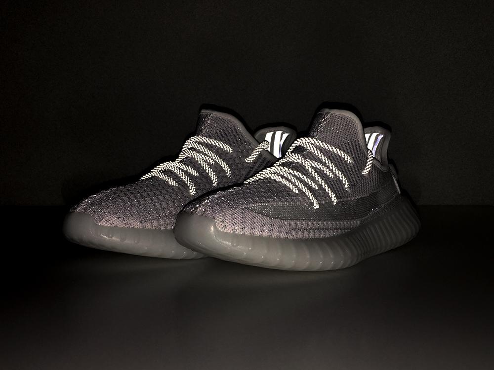 Продолжая заданную в расцветке “Static” эстетику с полупрозрачной боковой полосой вместо надписи “SPLY-350”, “Black” стала наиболее однотонной вариацией YEEZY BOOST 350 V2. В чёрный цвет окрашен текстильный материал Primeknit и подошва целиком, включая подмётку, чей коричневый оттенок последние несколько релизов силуэта оставался неизменным.
