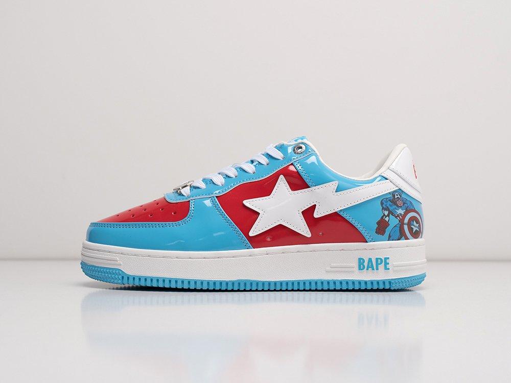 Дизайн кроссовок украшает фирменный логотип BAPE с падающей звездой на боковых панелях. При этом на пятке левого кроссовка изображен супергерой Marvel - Капитан Америка, а на правом - логотип Marvel. Такие детали делают обувь по-настоящему неповторимой.