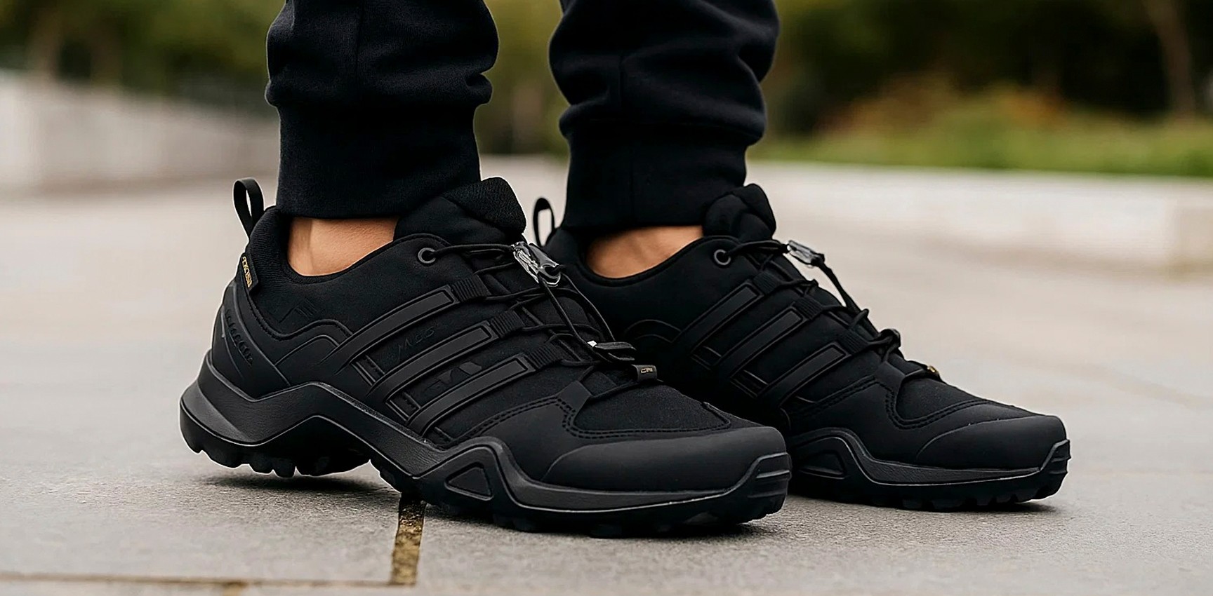 Terrex Swift R2 GTX можно интегрировать в любой гардероб. Они одинаково хорошо смотрятся с туристическими штанами и с урбанистическим аутфитом в стиле techwear.