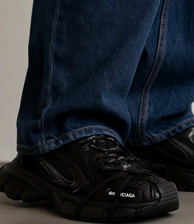 Одна из главных ошибок новичков в мире «chunky sneakers» — это попытка сочетать их с узкими джинсами или слимами. Почему это смотрится странно? Всё просто: массивная обувь визуально утяжеляет низ, а тонкие штаны сверху создают «эффект лодки». Баланс нарушается, и даже дорогие 3XL начинают выглядеть карикатурно.
