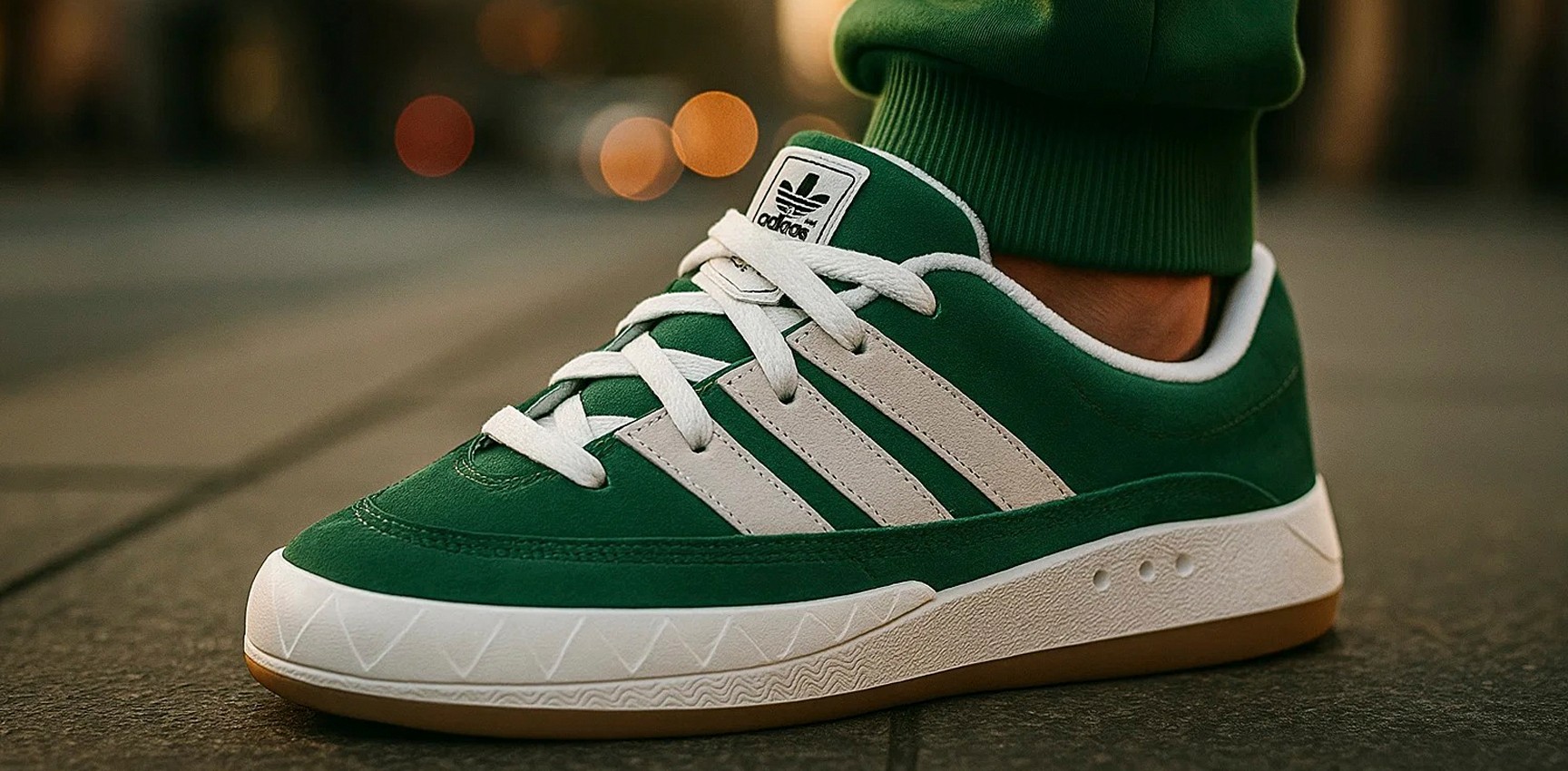 Adimatic также выделяются устойчивостью к внешним условиям: комбинация кожи и текстиля защищает от влаги, а массивная подошва обеспечивает сцепление с разными поверхностями. Таким образом, эти кроссовки можно смело использовать круглый год, сочетая с любыми оверсайз-комплектами.