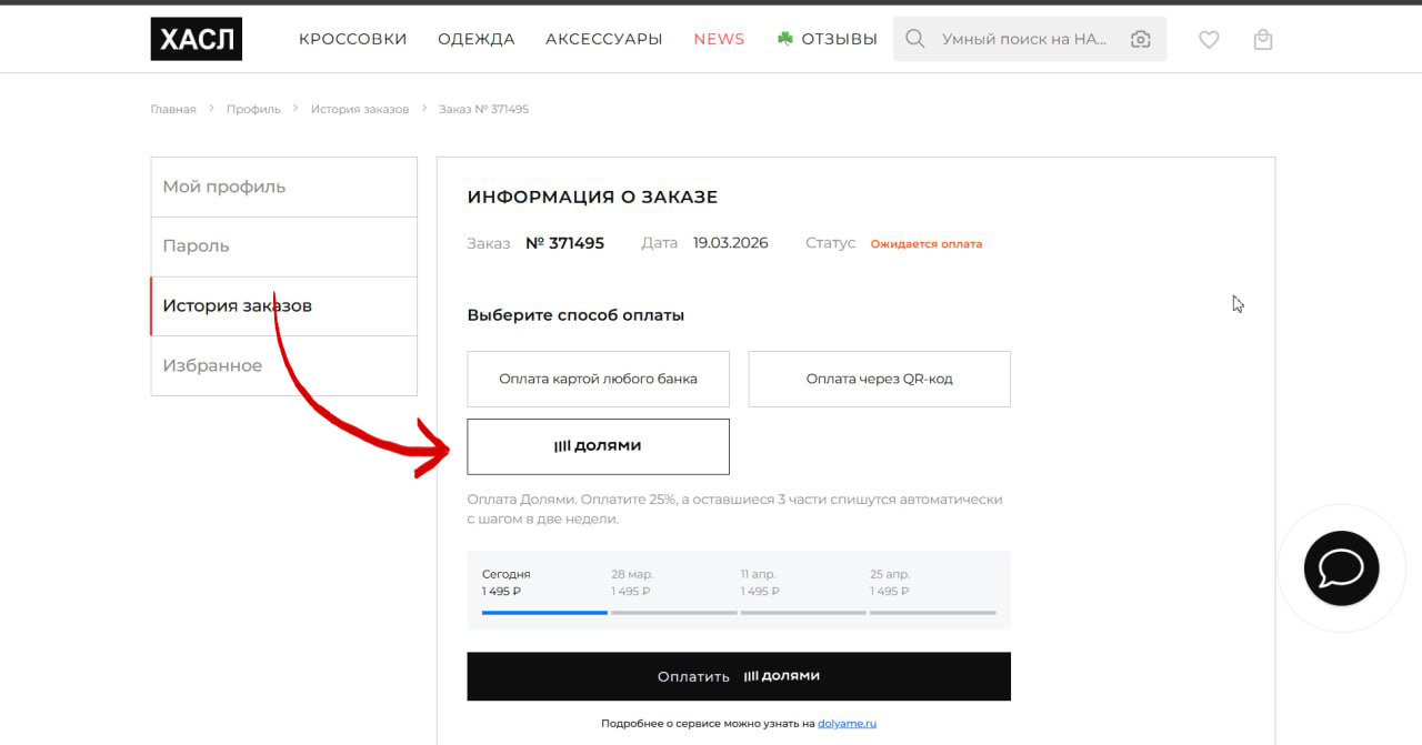 Как оформить заказ «Долями» на Хасл.рф?