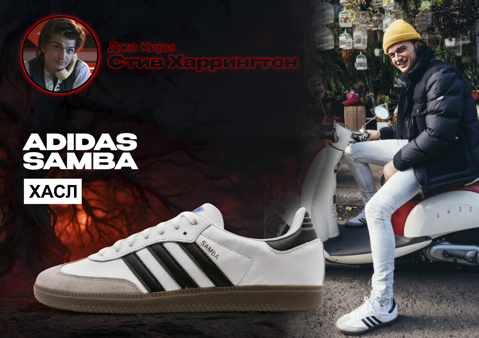 Джо известен своим кэжуал-стилем вне съемочной площадки, а в сериале он часто играет спокойных, но наблюдательных персонажей 👀🎬. Adidas Samba – это как раз отражение его характера: универсальные, надежные и с легкой ноткой ретро.