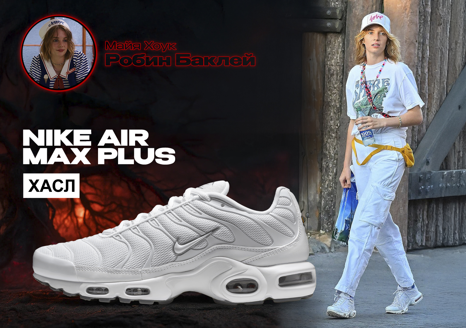 Майя – настоящая бунтарка как в сериале, так и в жизни ⚡🎸. Air Max Plus Tn с их стильными волнообразными вставками идеально подходят для ее дерзкого стиля: динамичные, заметные и немножко вызывающие. Эти кроссовки подчеркивают ее индивидуальность и любовь к streetwear.
