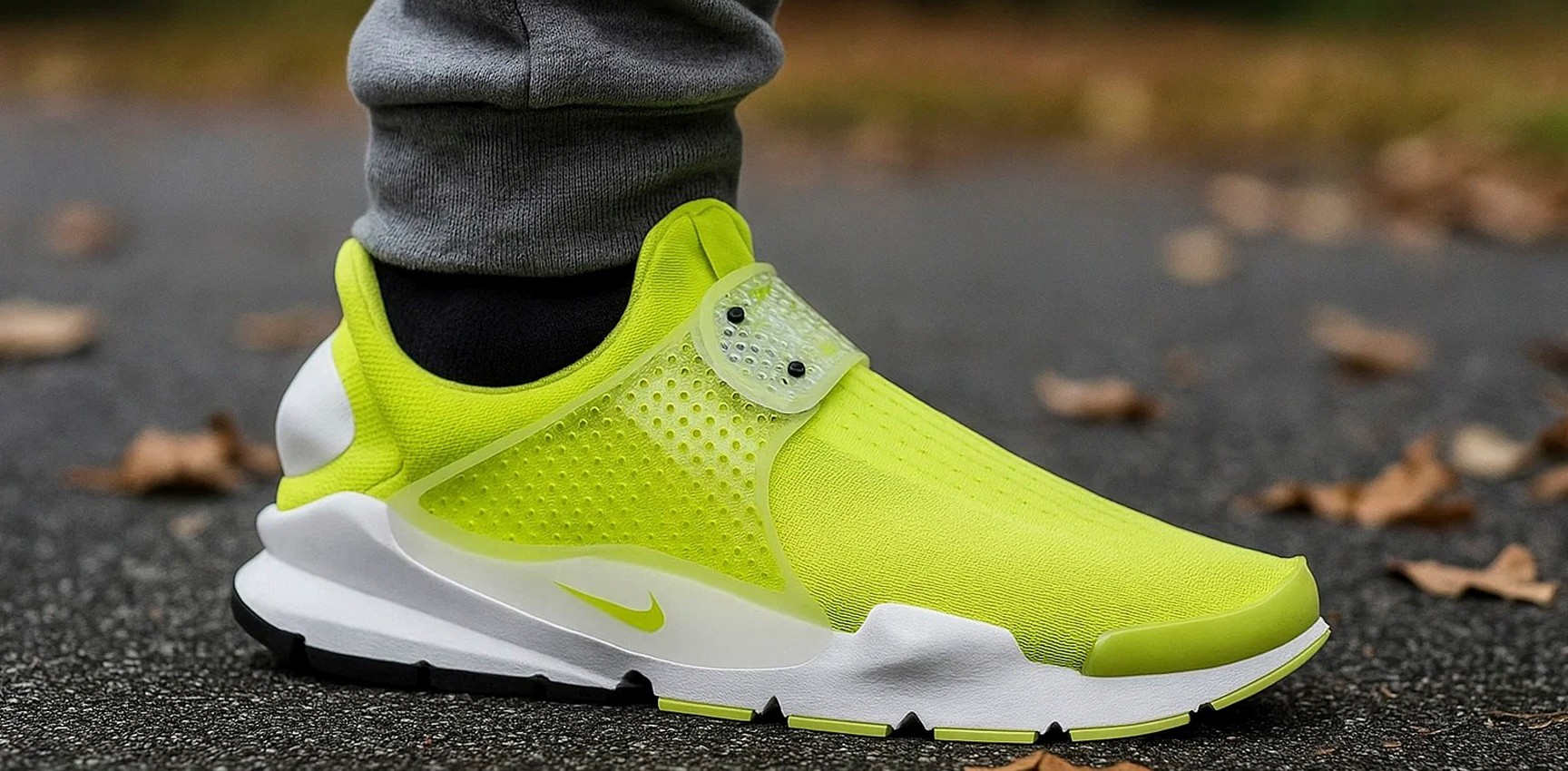 Можно сказать, что Sock Dart — это компромисс между тапочками и спортивной обувью. Если вы когда-нибудь мечтали выйти на улицу в домашних носках, не выглядя странно — вот оно, решение от Nike.