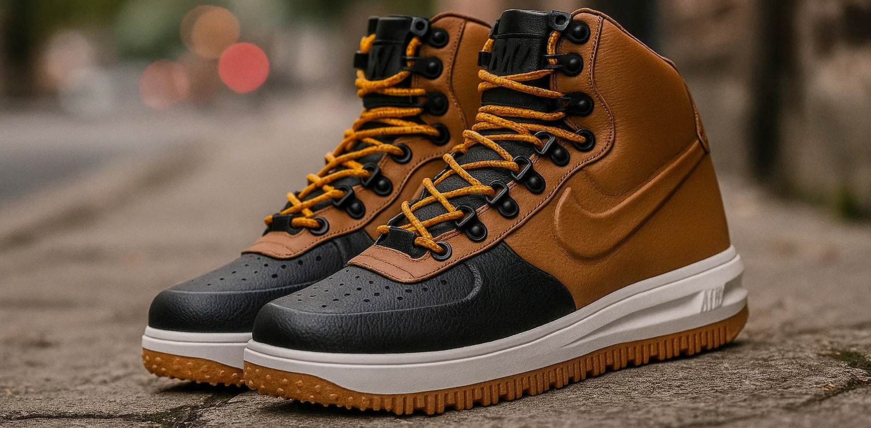 В октябре или ноябре главная проблема обуви — влажность и скользкая поверхность. Высокий силуэт Lunar Force 1 фиксирует щиколотку и препятствует попаданию влаги внутрь, особенно в версиях с кожаным верхом. К тому же многие осенние релизы идут с утеплённым язычком и плотной подкладкой.