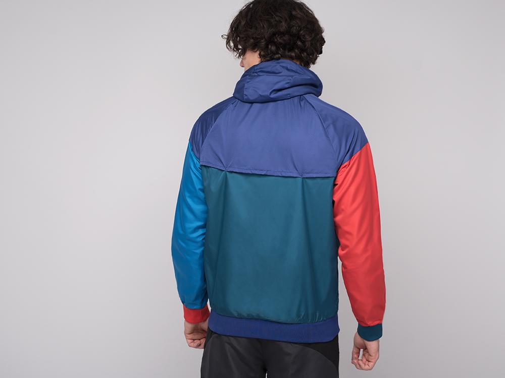Стильная разноцветная мужская ветровка Nike FC выполнена из полиэстера. Изделие с капюшоном на регулируемых завязках-шнурках образует ворот-стойку в сложенном положении. Застежка и боковые врезные карманы — на молнии. Плотные трикотажные манжеты и резинка имеют рифление и обеспечивают комфортный тепловой режим. Модель построена на сочетании бирюзовых, синих, красных и голубых вставок. Дизайн изделия отличает сдержанная пестрота и асимметрия оттенков. Завершают украшение модели контрастный принты логотипа бренда на груди и манжеты контрастного оттенка.