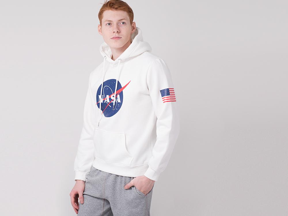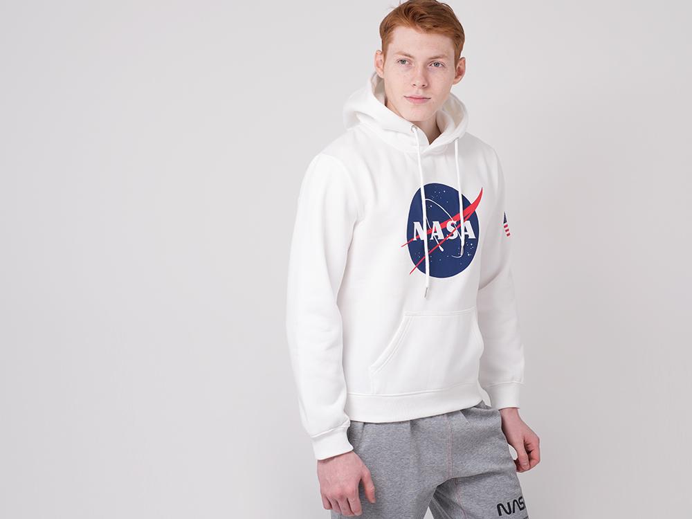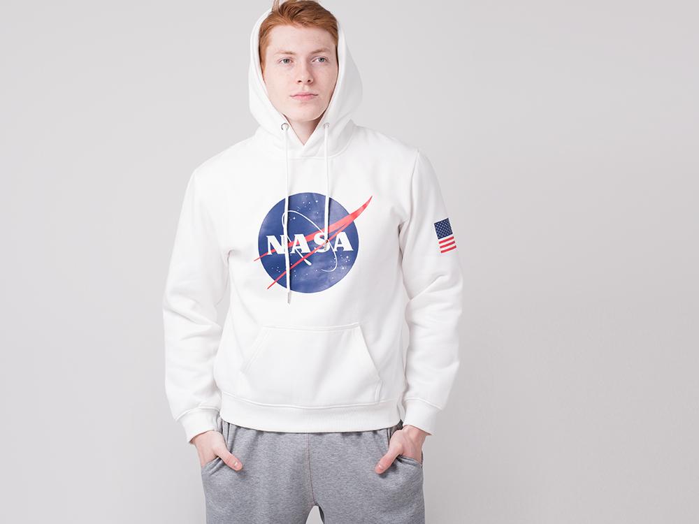 Стильный худи NASA белого цвета пошит полусвободным силуэтом. Трикотажное изделие